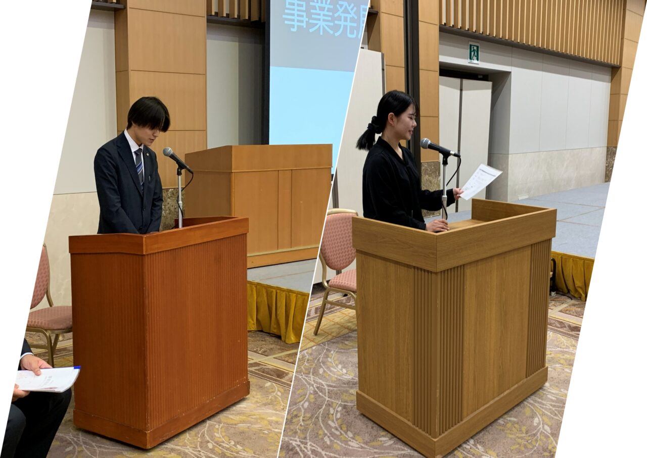 1部、2部ともに司会進行を務めたのは今年の新入社員。幾分緊張の面持ちながらも見事大役を果たしました!